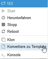 The script example generates an LXC container called lxc-test from the base DietPi VM lxc-conv-test with the container ID 153 (see screenshot at the top) with a 4 GiB root disk size, one CPU core, 2 GiB memory and dietpi as the root password of the new container.