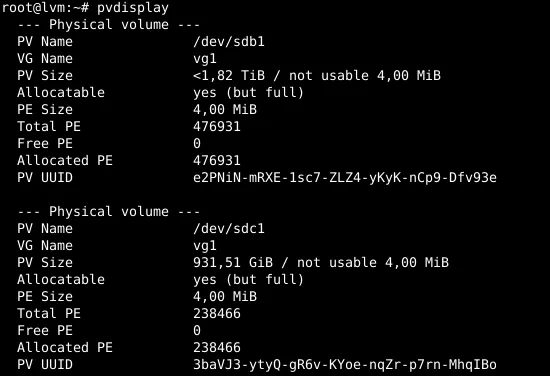 pvspvdisplaypvscanThe commands e.g. show this information: