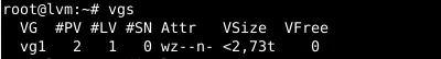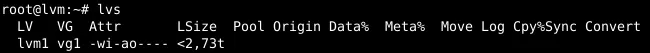 lvcreate -l 100%FREE -n lvm1 vg1This leads to: