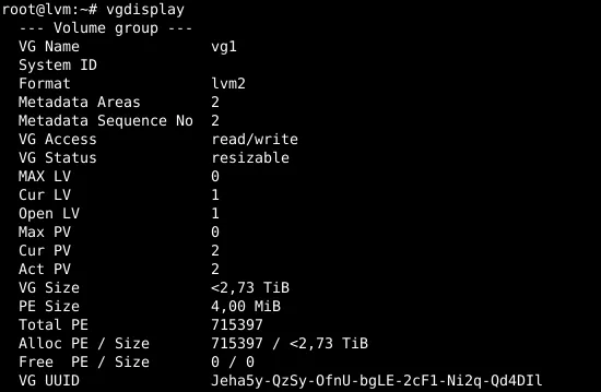 Then the volume group /dev/vg1 is created with the following command: