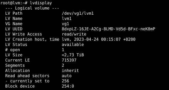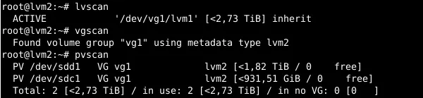 As a first step, the software package lvm2 is installed via: