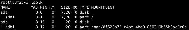 In the following example, a target system with hostname lvm2 is assumed: It contains two disks (/dev/sda and /dev/sdb), therefore having a different disk layout compared to the origin system lvm from example 1:
