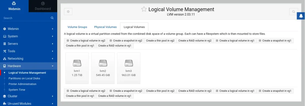 Many operations regarding logical volumes can be executed using this tool.
