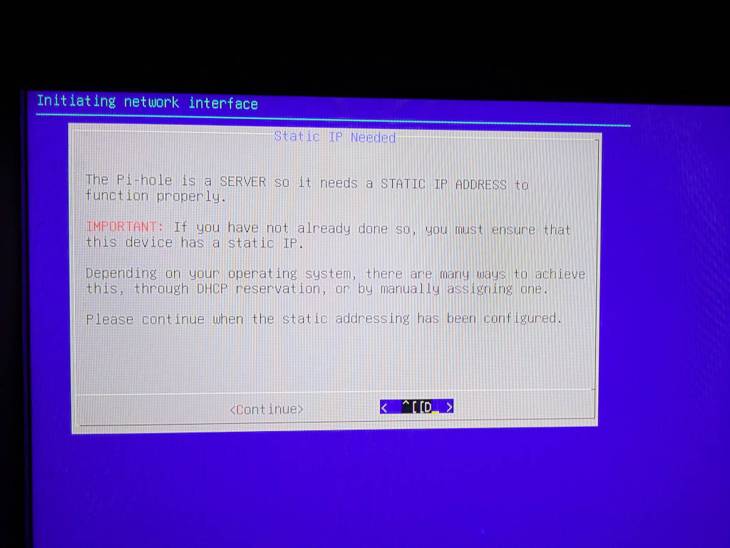 During the setup, it takes me to a blue screen to install and configure pi-hole.