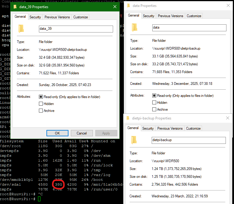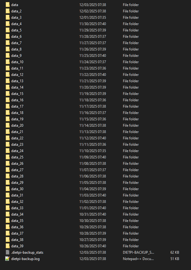 - each data_* folder in dietpi-backup should contain a full backup around ~33GB each