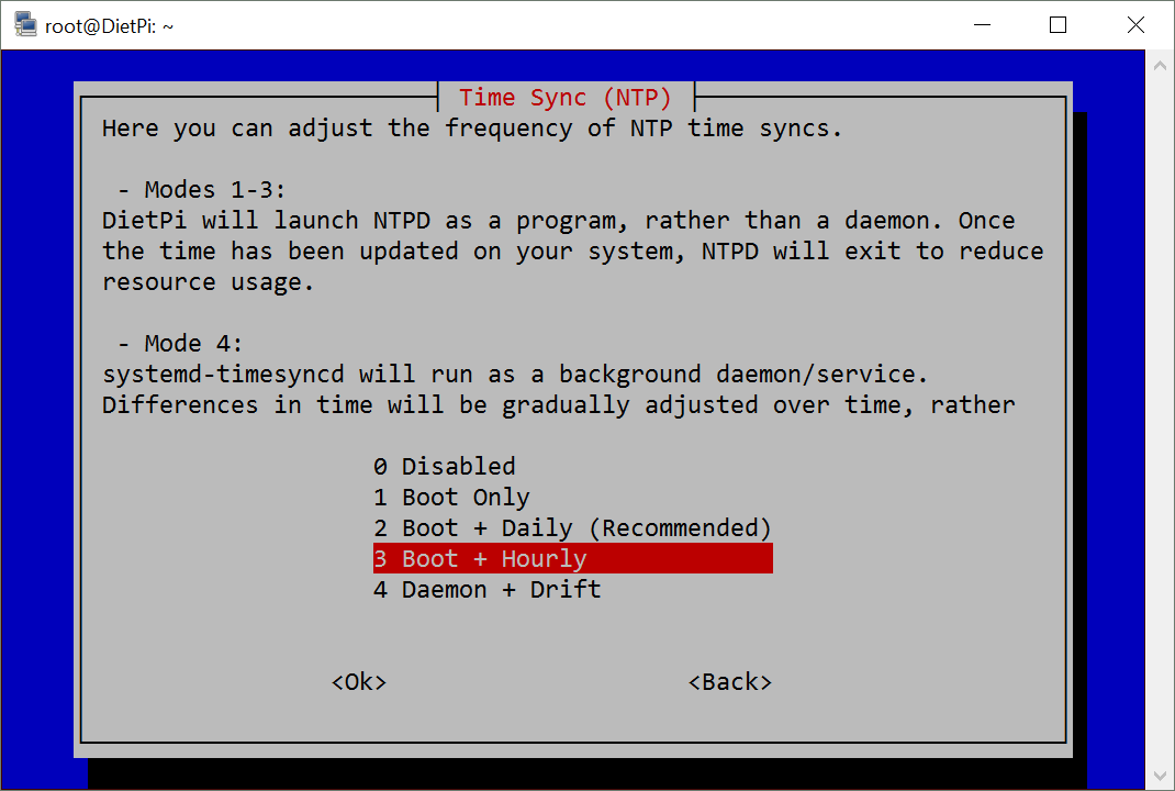 If NTP is already installed and adjusted by DietPi, it might be necessary to purge it once and reinstall it: apt purge ntp