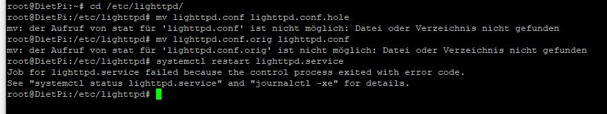 Dez 30 22:47:37 DietPi systemd[1]: [0;1;31m[0;1;39m[0;1;31mFailed to start Lighttpd Daemon.[0m