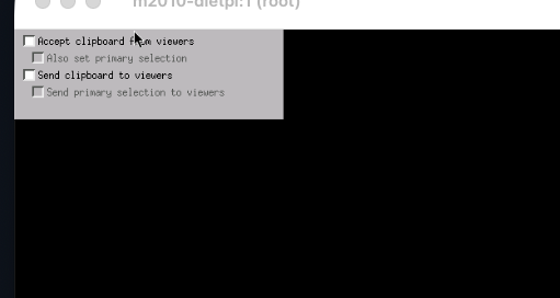 - VNC appears to start, but I get only a black screen with a couple of check boxes. I will try to attach a screenshot