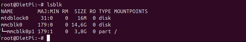 And the same SD card view with “lsblk” in the ssh connection